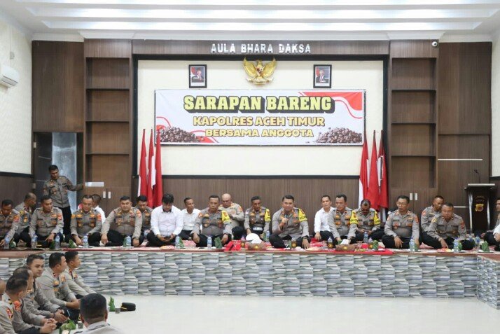 RajaNews.Xyz | ACEH TIMUR – Untuk membangun kekompakan dan mempererat hubungan emosional di lingkungan internal Kepolisian, Kapolres Aceh Timur AKBP Irwan Kurniadi, S.I.K. menginisiasi kegiatan sarapan bersama.