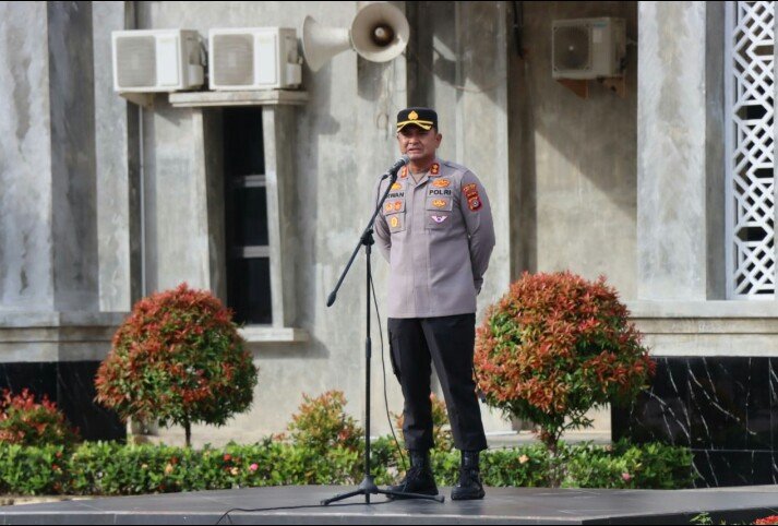 RajaNews.Xyz | Aceh Timur – Kapolres Aceh Timur Polda Aceh, AKBP Irwan Kurniadi, S.I.K. untuk pertama kalinya. Apel diikuti oleh Wakapolres Kompol Iswar, S.H., seluruh pejabat utama, perwira staf, Kapolsek dan personel Polres Aceh Timur derta perwakilan personel Polsek yang dilaksanakan di Lapangan Apel Sarja Arya Racana, Senin (21/04/2025).