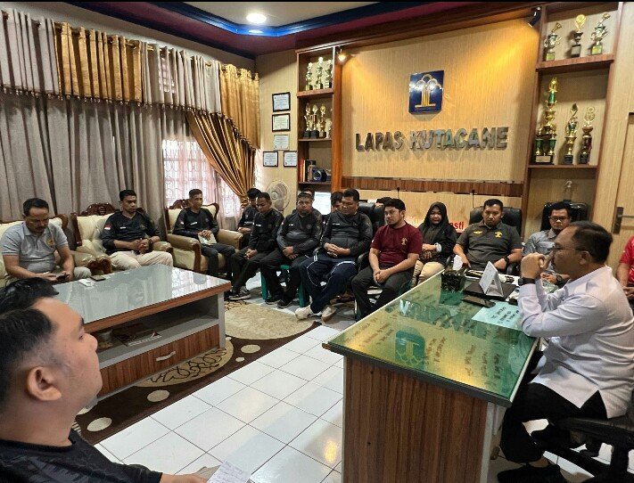 RajaNews.Xyz | Kutacane – Kepala Kantor Wilayah Direktorat Jenderal Pemasyarakatan (Kakanwil Ditjenpas) Aceh, Yan Rusmanto, menggelar rapat koordinasi dengan Kepala Lembaga Pemasyarakatan (Kalapas) dan jajaran petugas Lapas Kelas IIB Kutacane guna membahas langkah-langkah strategis pasca kejadian pelarian narapidana yang terjadi beberapa waktu lalu, Sabtu (15/3/2025).