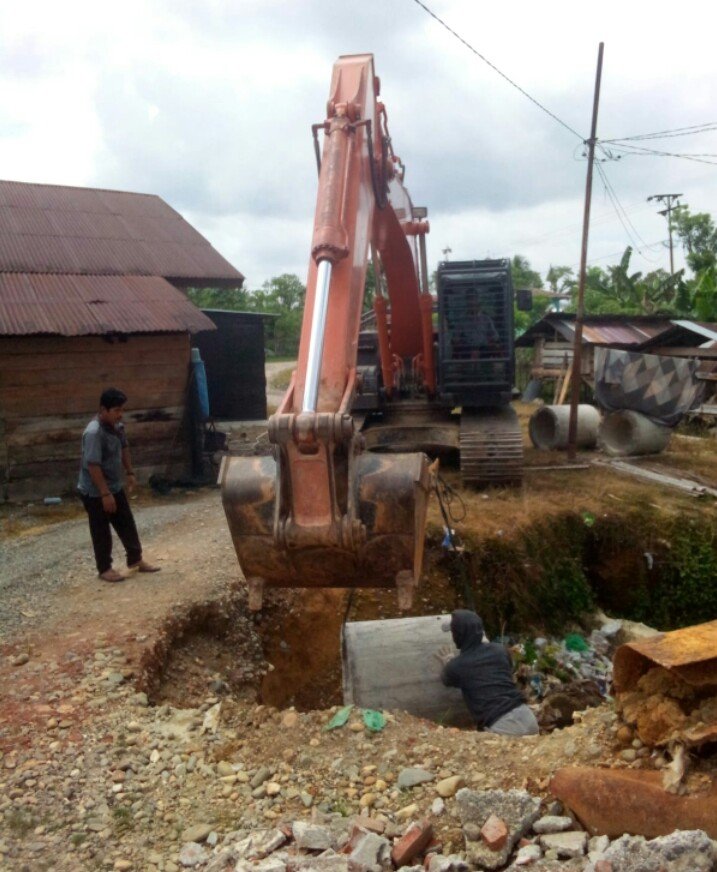 PT, Fajar Baizuri Turunkan Alat Berat Untuk Membangun Gorong gorong Menuju Lapangan Voly dan Rumah Masyarakat.