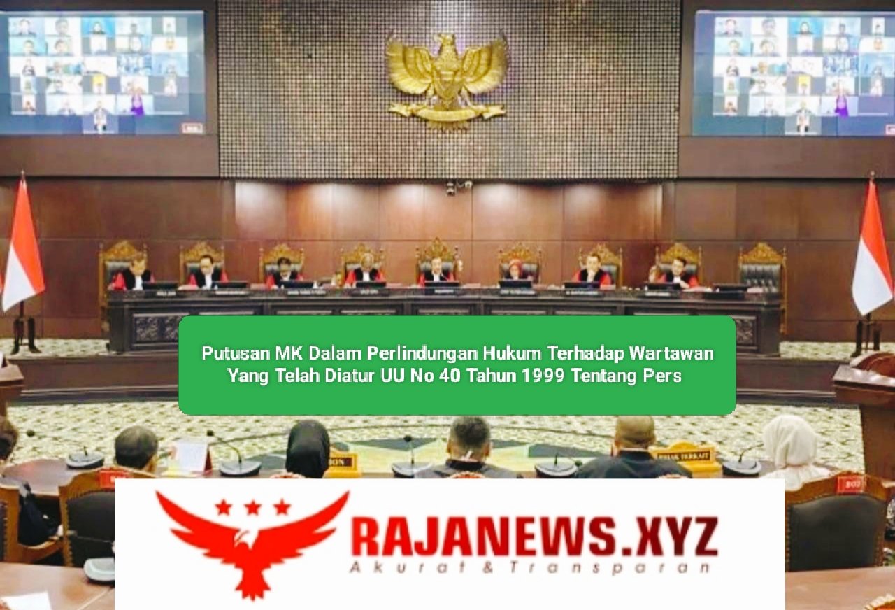 JAKARTA, RAJANEWS.XYZ —Mahkamah Konstitusi (MK) telah mengeluarkan penjelasan mengenai frasa “Perlindungan Hukum” terhadap Wartawan yang diatur dalam Undang-Undang Nomor 40 Tahun 1999 tentang Pers, Hal ini disampaikan dalam sidang putusan pada, Senin (19/01/2026).