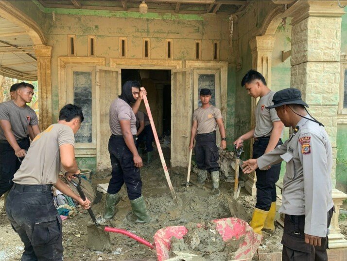 Respon Cepat Brimob Indonesia Selalu Hadir Untuk Masyarakat dalam Penanggulangan Bencana Daerah di Aceh
