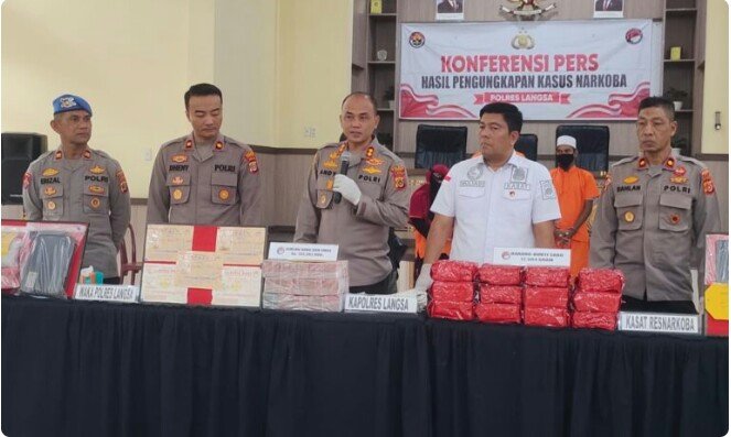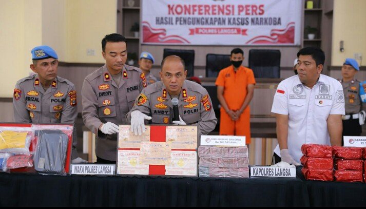 Kapolres Langsa, AKBP Andy Rahmansyah, SIK. SH. MH didampingi Wakapolres Langsa Kompol Dheny Firmandika, S.Ab., S.I.K, Kabag Ops, Kompol Dahlan, Kasat Resnarkoba Polres Langsa, AKP Mulyadi, SH. MH dalam keterangan persnya di Aula Adhi Pradana Polres Langsa mengungkapkan, terbongkarnya sindikat pengedaran sabu asal Aceh Timur berdasarkan informasi masyarakat bahwa akan ada transaksi jual beli narkotika jenis Sabu dalam jumlah yang besar di wilayah Kota Langsa.