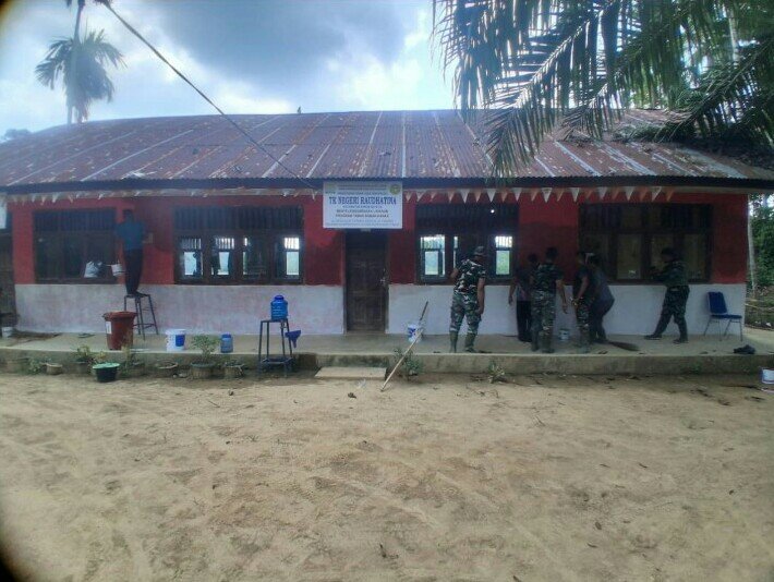 Kegiatan pengecatan ini merupakan bagian dari sasaran fisik TMMD Reguler ke-128 dalam rangka meningkatkan kualitas sarana pendidikan bagi masyarakat desa.