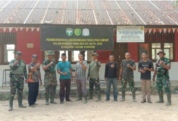 RAJANEWS.Xyz | Aceh Timur – Personel Satgas TNI Manunggal Membangun Desa (TMMD) Reguler ke-128 Kodim 0104/Aceh Timur melaksanakan sekaligus merampungkan pengecatan bangunan PAUD Raudhatina yang berlokasi di Desa Alue Canang, Kecamatan Birem Bayeun, Kabupaten Aceh Timur, Senin (27/04/2026).