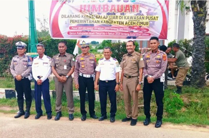Untuk menekan maraknya aksi balap liar yang meresahkan masyarakat, Satuan Lalu Lintas (Satlantas) Polres Aceh Timur bersama Dinas Perhubungan dan Satpol PP Kabupaten Aceh Timur memasang spanduk imbauan bertuliskan “Stop Balap Liar”, Selasa (09/09/2025).