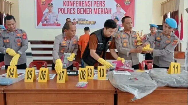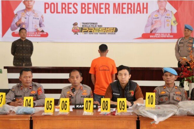 “Alhamdulillah, kurang dari 24 jam pelaku sudah ditangkap. Bersamanya juga diamankan barang bukti berupa satu unit sepeda motor, satu kapak, satu bilah parang, satu sangkur, uang tunai dua juta rupiah,satu kalung emas, satu dompet beserta KTP korban, satu unit handphone, satu lembar papan, dua cangkul, satu selang, satu karung semen bekas, sepasang sepatu both, dan satu set pakaian korban. Saat ini, pelaku beserta barang bukti diamankan di Satreskrim Polres Bener Meriah untuk proses hukum lebih lanjut,” kata Tuschad, dalam konferensi pers di Polres Bener Meriah, Jum’at, 31 Januari 2025.
