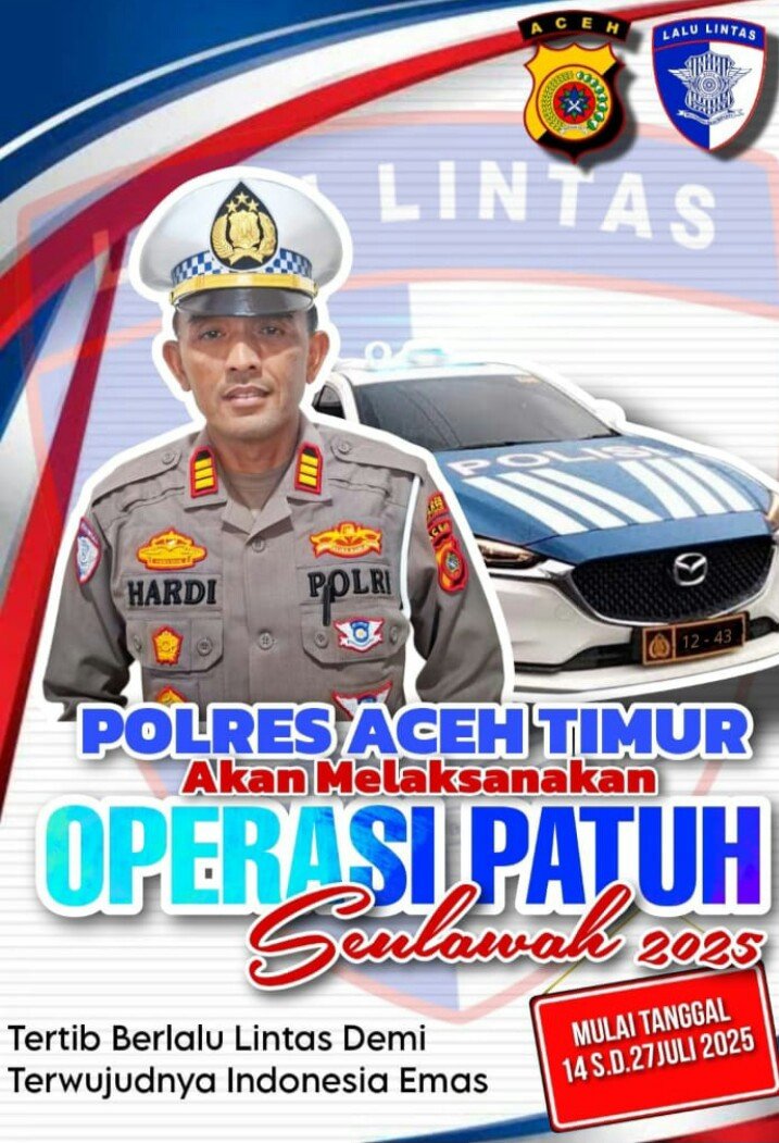 RajaNews.Xyz | Aceh Timur – Korps Lalu Lintas (Korlantas) Polri menggelar Operasi Patuh selama dua pekan. Operasi patuh akan dimulai 14 hingga 27 Juli 2025 dan digelar secara nasional.