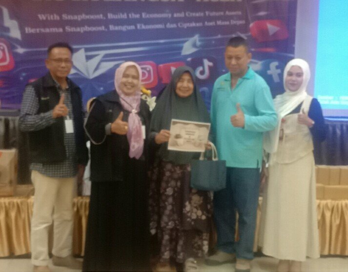 Dari amatan awak media ini, Disesi acara yang digelar ada sesuatu hal yang menarik yaitu salah seorang member SnapBoost, Ibu Derita Murni (67) warga Gampong Sodorejo, Kecamatan Langsa Lama, Kota Langsa mendapat paket umroh dari salah satu program SnapBoost.