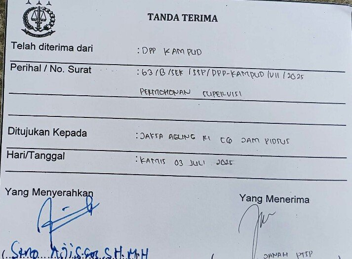 RajaNews.Xyz | Jakarta, – Dewan Pimpinan Pusat (DPP) Komite Aksi Masyarakat dan Pemuda untuk Demokrasi (KAMPUD) secara resmi telah mendaftarkan surat permohonan supervisi penanganan kasus dugaan tindak pidana korupsi (Tipikor) belanja dana hibah KONI Provinsi Lampung tahun anggaran 2020 dan menetapkan mantan/eksponen Ketua Umum KONI Provinsi Lampung berinisial MYSB menjadi tersangka baru ke kantor Kejaksaan Agung (Kejagung) RI, hal ini akibat dari lambannya penanganan kasus sejak tahun 2021 sampai tahun 2025 tak kunjung selesai dan dinilai tim penyidik Kejati Lampung belum mengusut tuntas terhadap perkara yang telah merugikan keuangan daerah milyaran rupiah.