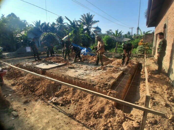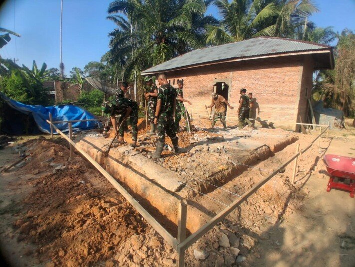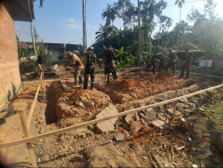 Sementara itu, di tengah aktivitas penggalian, Sertu Johan Untung yang bertugas sebagai tukang menyebut bahwa pengerjaan pondasi menjadi bagian paling menentukan dalam kualitas bangunan.