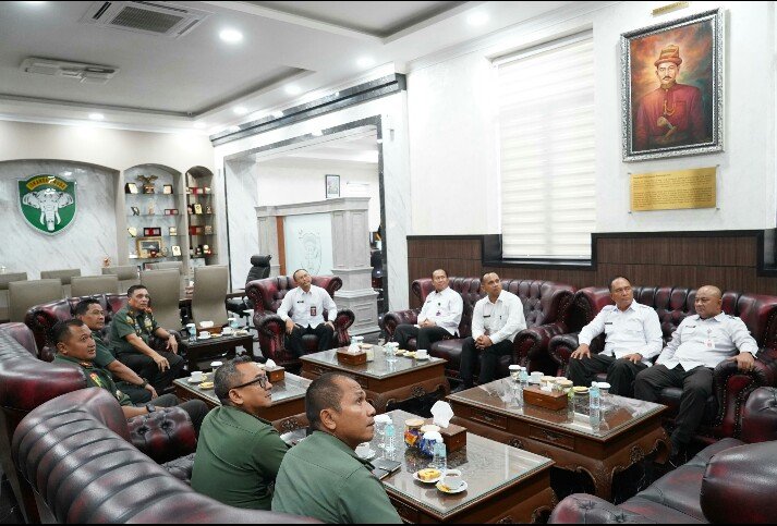 RajaNews.Xyz | Banda Aceh – Panglima Komando Daerah Militer Iskandar Muda (Pangdam IM), Mayor Jenderal TNI Niko Fahrizal, M.Tr.(Han), menerima audiensi dari Kepala Kantor Wilayah Direktorat Jenderal Pemasyarakatan (Kanwil Ditjen PAS) Aceh, Bapak Yan Rusmanto, Bc.Ip, S.Sos., M.Si., beserta rombongan di ruang kerjanya pada Rabu (26/2/2025). Pertemuan ini bertujuan untuk mempererat sinergi antara Kodam IM dan Ditjen PAS dalam mendukung tata kelola kelembagaan serta peningkatan sumber daya manusia (SDM) di lingkungan pemasyarakatan di Aceh.