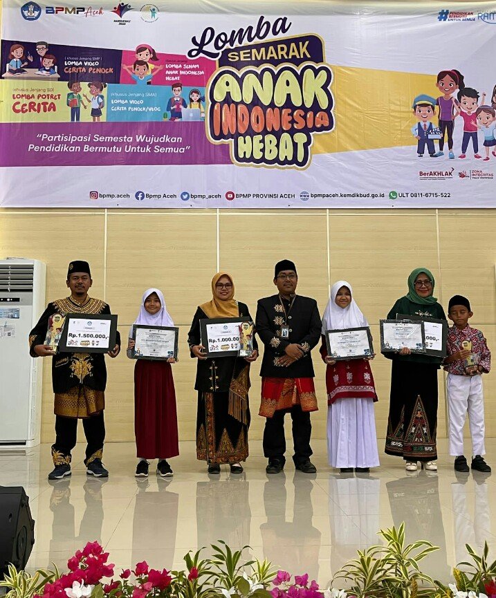 Lomba Potret Bercerita menjadi salah satu cabang yang dilombakan pada tingkat Sekolah Dasar. Penghargaan diserahkan pada hari Jum’at, 2 Mei 2025 di gedung BPMP Provinsi Aceh, turut juga dihadiri oleh 21 sekolah terbaik di Aceh.