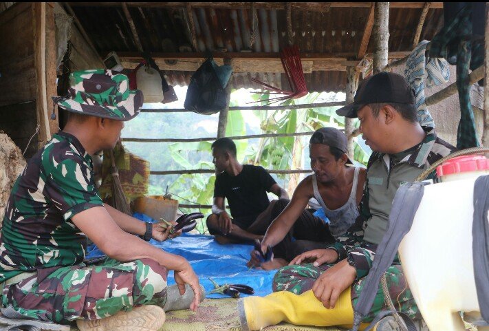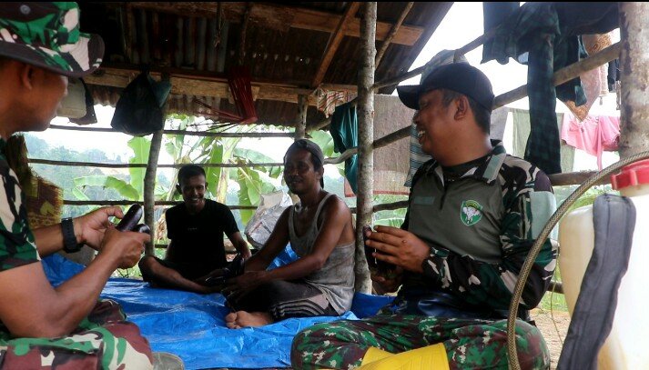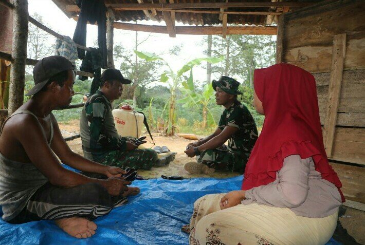 Pertemuan berlangsung sederhana namun penuh kehangatan di gubuk kecil milik Bapak Subur yang berada di tengah areal pertanian. Di tempat itulah, Sertu Amin berbincang santai sambil memberikan motivasi kepada Bapak Subur yang tetap tekun bertani dan bertahan hidup bersama istri serta anak-anaknya di kawasan tersebut.