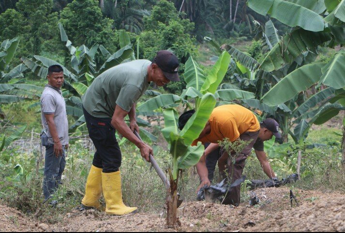 “Hari ini kami bersama masyarakat melaksanakan perawatan tanaman cabai dan pisang, sekaligus membersihkan gulma di sekitar lahan. Ini bentuk pendampingan kami agar lahan yang sudah dibuka benar-benar produktif dan memberi manfaat bagi warga,” ujarnya.