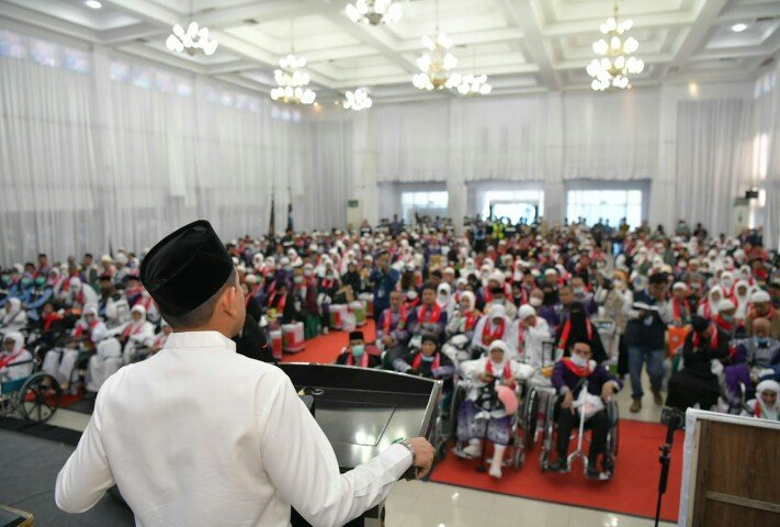 “Atas nama pribadi dan Pemerintah Aceh, kami mengucapkan selamat datang kembali di Tanah Rencong tercinta. Alhamdulillah, Bapak dan Ibu telah menunaikan rukun Islam yang kelima. Mudah-mudahan semua dosa diampuni, dan semua amal ibadah diterima sebagai haji yang mabrur.”