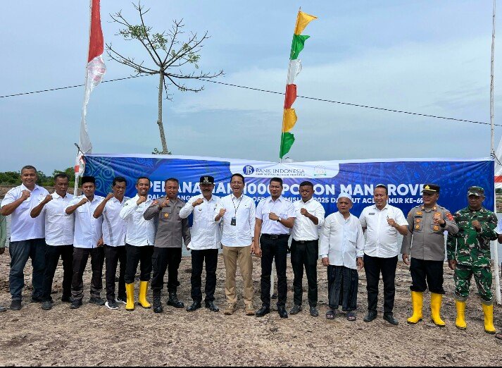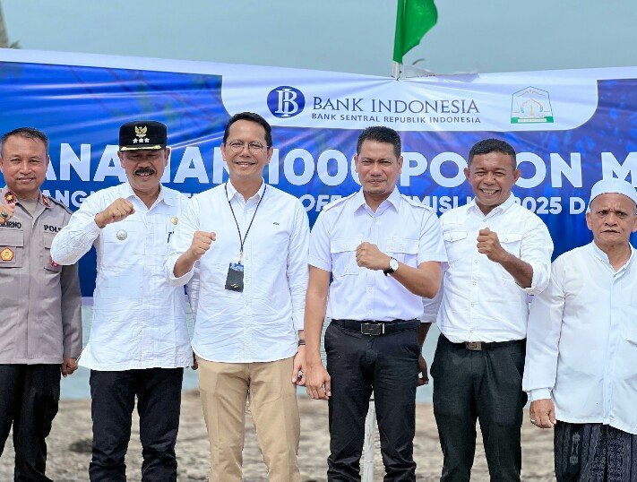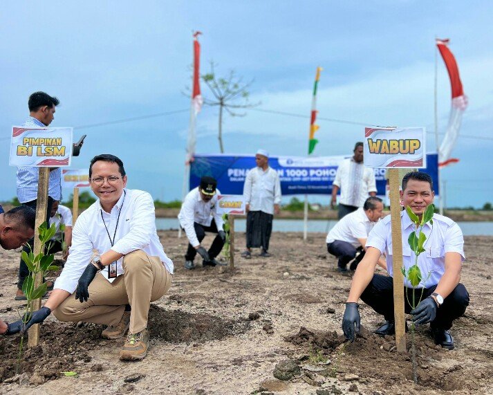 “Kami Bank Indonesia tidak hanya berperan dalam menjaga stabilitas moneter dan keuangan, tetapi juga memiliki tanggung jawab sosial untuk menjaga lingkungan. Penanaman 1.000 pohon mangrove ini adalah wujud nyata sinergi antara BI dan Pemerintah Kabupaten Aceh Timur dalam mendukung program off-set emisi KKI 2025,” Ujar Prabu Dewanto.