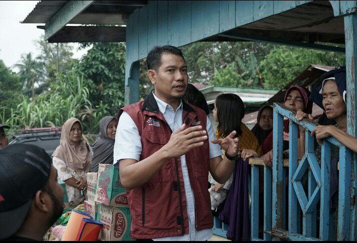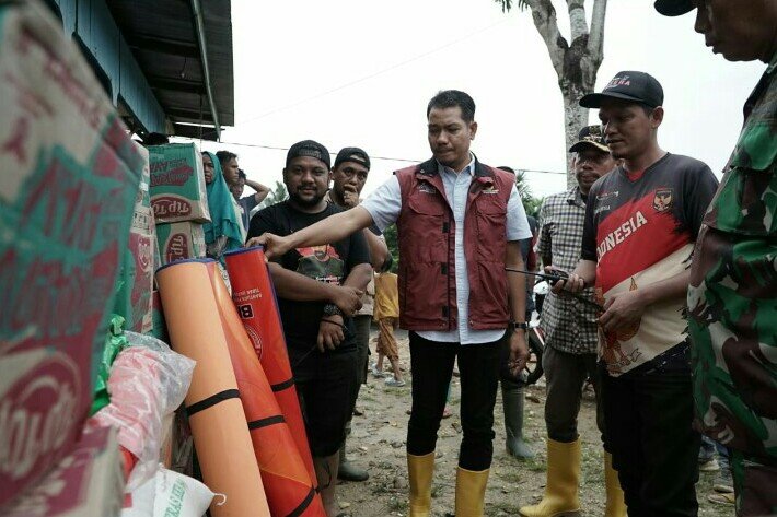 Berangkat dari Kota Idi sejak pagi hari, Wakil Bupati tak hanya datang membawa empati, tetapi juga membawa bantuan bagi para korban banjir susulan Kec Indra Makmur..
