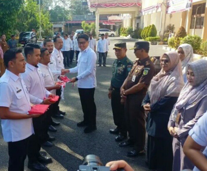 RajaNews.Xyz | KOTA LANGSA – Pemerintah Kota Langsa membagikan 3.410 bendera Merah Putih kepada masyarakat dalam apel Gerakan Pembagian Bendera Merah Putih di Halaman Kantor Pemerintah Kota Langsa, Rabu (13/08/2025), menyambut HUT Ke-80 Kemerdekaan Republik Indonesia.