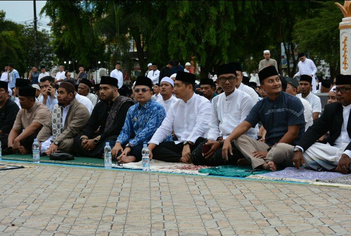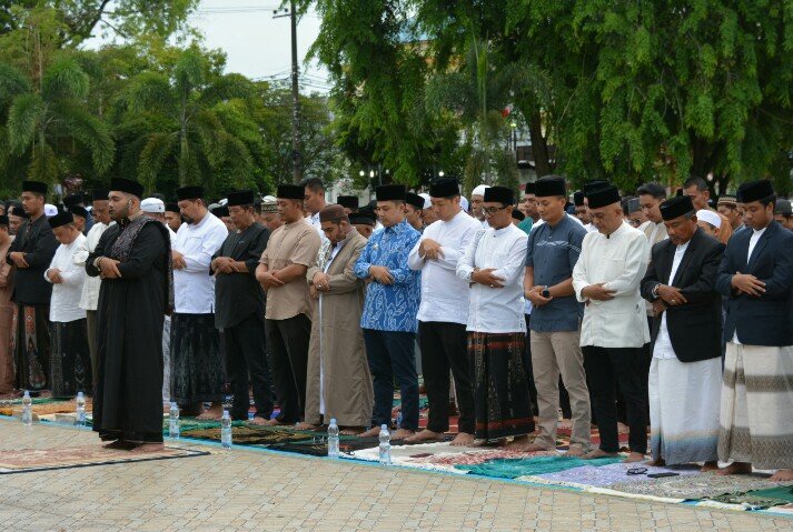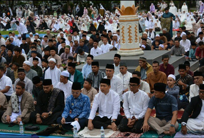 RajaNews.Xyz | Kota Langsa – Wali Kota Langsa Jeffry Sentana S Putra, SE, dan Wakil Wali Kota Langsa Muhammad Haikal Alfisyahrin, ST, bersama Forkopimda melaksanakan Ibadah Shalat Id Idul Adha berjamaah bersama ribuan masyarakat Lapangan Merdeka Kota Langsa.