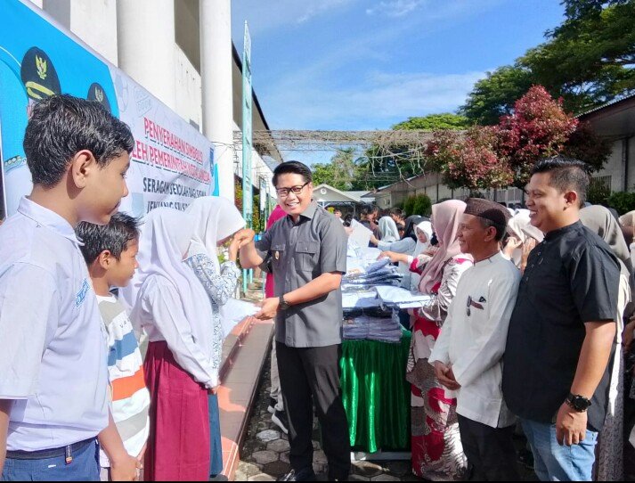 RajaNews.Xyz | KOTA LANGSA – Walikota Langsa Jeffry Sentana S Putra, SE dan Wakil Walikota Langsa Muhamad Hailal Alfisyahrin mewujudkan salah satu program LANGSA JUARA yakni memberikan seragam Gratis bagi Anak Sekolah dan dilaksanakan secara simbolis oleh Walikota Langsa di SD N 1, SD N 3 ,SD N 5, SD N 11, SMP N 1, SMP N 3 Dan SMP N 9, sementara Wakil Walikota Langsa memberikan secara simbolis di SMP N 5, SMP N 2, SD N 3, SD/SMP Muhammadiyah dan SD IT Almarhamah.