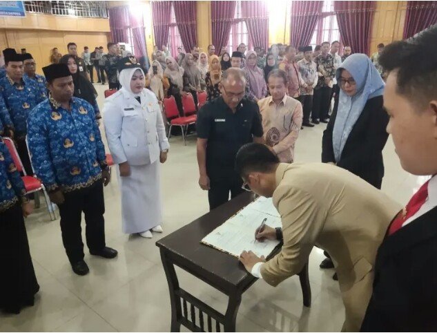 RajaNews.Xyz | KOTA LANGSA – Walikota Langsa, Jeffry Sentana S. Putra mengambil sumpah jabatan, melantik dan mengukuhkan Camat Langsa Kota, pejabat Administrator, Pengawas serta Fungsional di lingkungan Pemerintahan Kota Langsa di aula Cakra Donya, Kamis (10/07/2025).