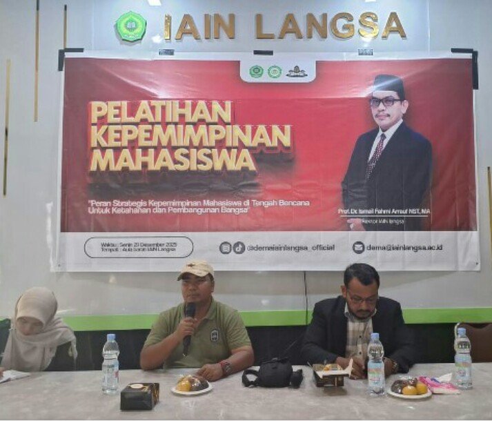 Hal tersebut disampaikan Dr. Emi saat menjadi narasumber dalam kegiatan Pelatihan Kepemimpinan Mahasiswa dengan tema “Peran Strategis Kepemimpinan Mahasiswa di Tengah Bencana untuk Ketahanan dan Pembangunan Bangsa.”, yang dilaksanakan Dewan Eksekutif Mahasiswa (DEMA) IAIN Langsa, Senin, 29 Desember 2025 di kampus setempat.