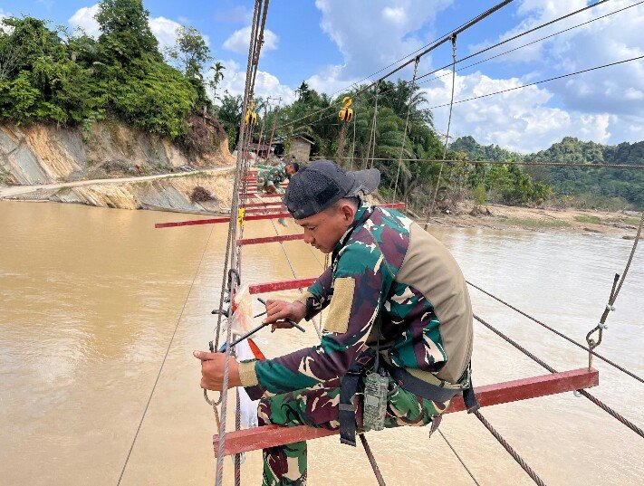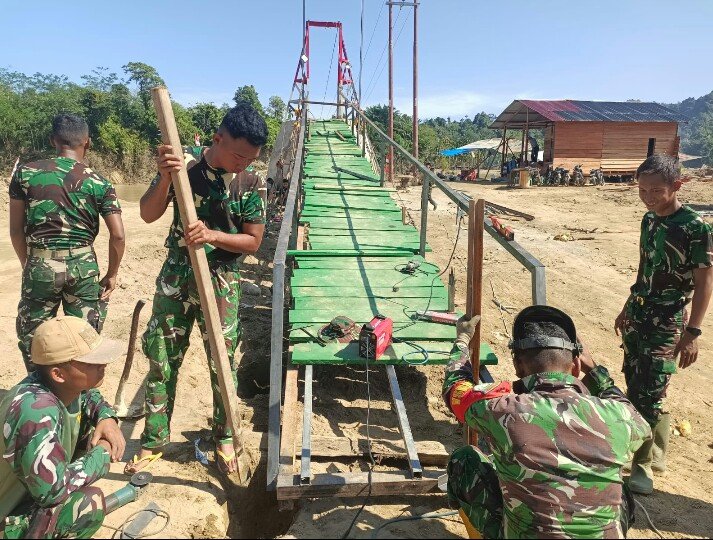 Pembangunan jembatan tersebut dilaksanakan bersama prajurit Yonif TP 853/BRB sebagai wujud sinergi TNI dalam mendukung pembangunan infrastruktur di wilayah pedalaman. Selasa (27/01/2026).